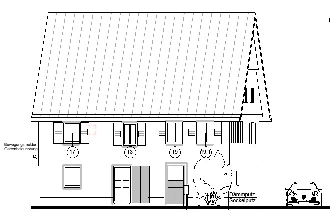 Nachdem wir festgestellt haben, dass der Balken über der Tür komplett erneuert werden muß, haben wir die Gelegenheit genutzt, die ganze Frontseite zum Hof neu zu gestalten. Unten in der alten Milchküche ist das Fenster raus, dafür machen wir in die neue Tür ein Fenster rein. Die alte Eingangstür wird ein großes Fenster, welches Licht auf die Treppe wirft. Dann kommt links unten noch ein großes Fenster rein. Oben im Arbeitszimmer haben wir ja die Holzdecke entdeck. Wir denken, dass das zugemauerte Fenster rechts wieder geöffnet werden sollte, um die Abendsonne rein zu lassen. Wir finden das sieht toll und sehr stimmig aus. Unsere Architektin hat das wie immer gut vorbereitet, so dass das Denkmalamt gleich zustimmen konnte :-).