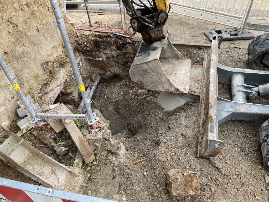 Die hat auch gleich ein Fundament bekommen. Unsere neu verlegten Rohre sollen es ja nicht zu schwer haben…