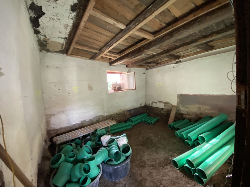 In Aufzeichnungen aus den 60er Jahren hatten wir gefunden, dass sich unser Vorbesitzer geweigert hatte, an die Kanalisation angeschlossen zu werden. Er wurde „zwangskanalisiert“ :-)).