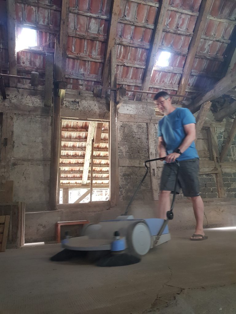 Wenn es ans Kehren geht, ist unser Anwesen eine echte Herausforderung. Die erste große Hofreinigung habe ich noch mit Verzweiflung und Blasen an den Händen mit dem Besen gemacht. Letzten Samstag habe ich mich dann aber doch professionell ausgestattet und eine mechanische Kehrmaschine organisiert. Mit dem Ding läßt sich der Dreck echt gut – und ganz ohne Staubentwicklung – auffegen. Einmal im Reinigungsflash habe ich dann noch mit dem kleinen Industriesauger alles durch gesaugt. Von Tenne über Fruchtboden, Heuboden und Kuhstall. Da hat man gesehen, was man schafft. Plötzlich sieht man sogar die Struktur im Holz der Bodenplatten :-). Ich glaube das ist eine Form von Coronalagerkoller. Anders kann ich mir den Wahn nicht erklären. Dann hatte ich mir die Woche noch einen Wlan-Router bestellt. Das Teil ist echt krass und eigentlich für Gaming-Wettbewerbe ausgelegt. Jetzt haben wir in jeder Ecke vom Grundstück Internet :-). Vielleicht gibt es ja in der Scheune alsbald die ersten Gaming Partys. Auf jeden Fall kann ich nun Videokonferenzen aus der Scheune machen…
