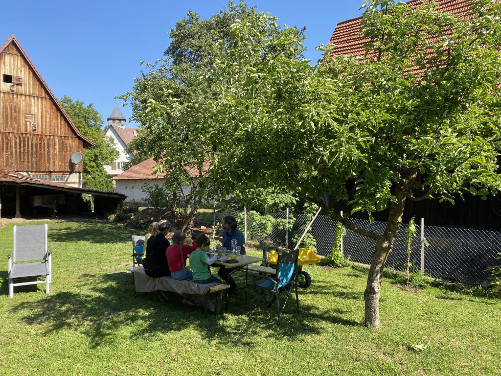 Gute Freunde haben sich kurzfristig zum Grillen angemeldet. Stolz haben wir natürlich unser neues – immer schöner werdendes Anwesen – präsentiert. Im Wohnanhänger hatten wir dann auch die ersten Übernachtungsgäste auf dem Anwesen. Sonntag zum Frühstück saßen wir das erste Mal im Garten. Das war einfach toll. Gren hat als Drohnenpilot eine erste Luftaufnahme vom Anwesen gemacht. Er behauptet, dass die Steuerung ein Problem hatte – vielleicht hätte er am Abend vorher nur früher ins Bett sollen 😉