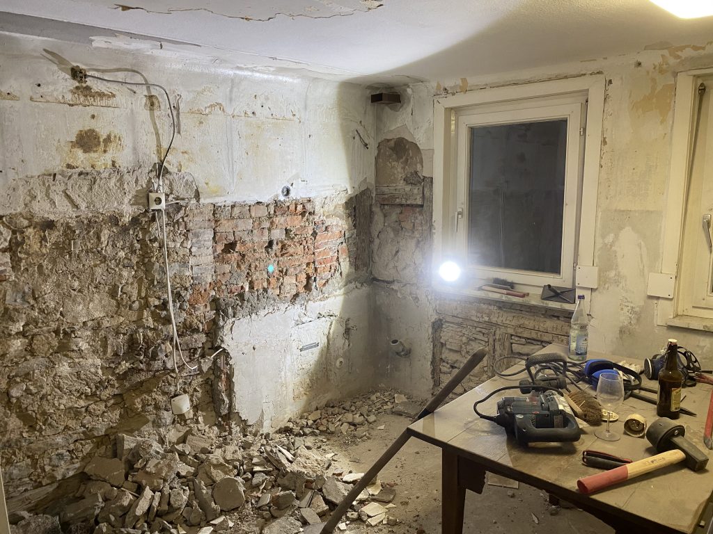 So haben wir jetzt eine Liste, was wir machen können. Oben drauf stand die Fliesen in der Küche zu entfernen, Gewölbekeller grundreinigen und noch diverse andere sinnvolle Dinge. Also los… 🙂