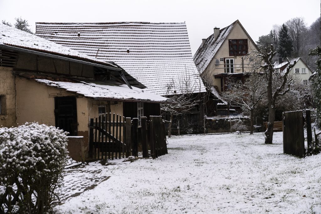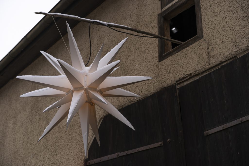 Die Gelegenheit mit Schnee musste ich natürlich gleich noch für ein paar Fotos nutzen. Das eine Bild ist heute bei einem Spaziergang mit Melisa und Nette entstanden. Wer genau sucht, kann die Scheune mit dem Stern finden :-).