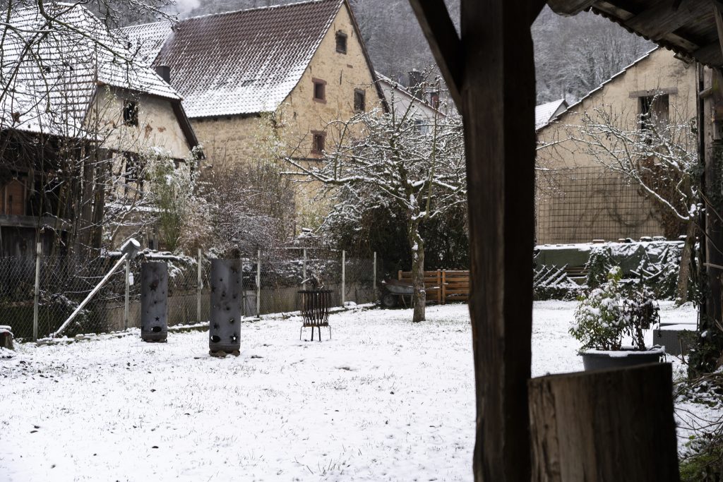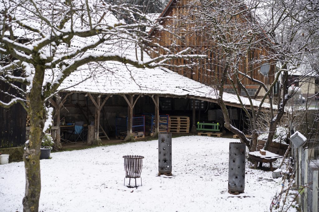 Heute morgen wurden wir vom Scheefahrzeug geweckt. So traumhaft schön! Nicht viel – doch wir sind hier in der Gegend die letzten Jahre vom Schnee gar nicht verwöhnt worden. Im Hof haben wir nur etwas ‚abgehangen‘ und nach alten Türen und Fenstern im Internet gesucht. Im Kuhstall gibt es auch noch eine Trennwand in der zwei Türen verbaut wurden. Vielleicht können wir die ja noch nutzen.