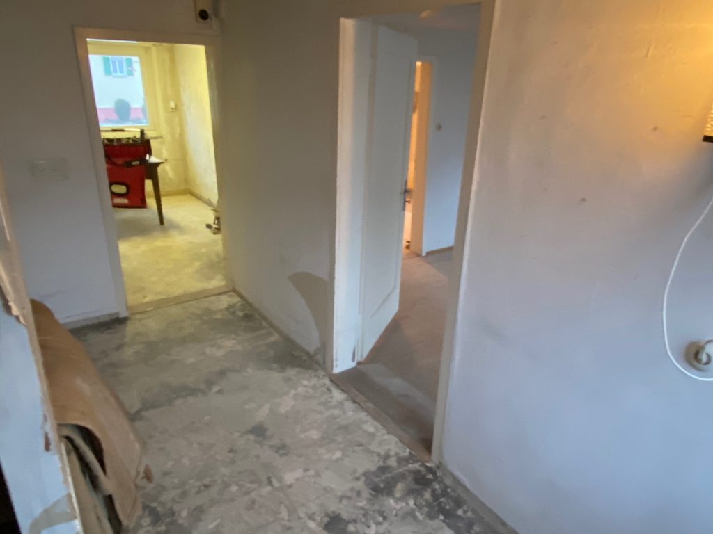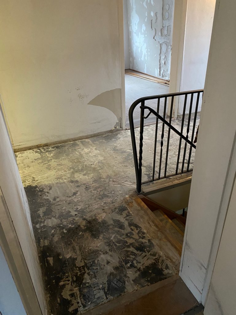 Neben dem Entfernen der Fließen können wir vor der Baufreigabe schon mal das Linoleum aus dem Haus entfernen. Was sich so leicht anhört ist ein ziemliches Geschufte. Entweder Stück für Stück mit dem Multitool abschaben oder streifenweise mit der Heißlufpistole anwärmen und abziehen. Da lernt man das Haus Stück für Stück kennen… 😉 Bei der Arbeit haben wir festgestellt, dass eine saubere Baustelle ganz hilfreich ist. Das heißt, es wird jetzt immer mit dem Industriesauger gereinigt, so dass wir es vermeiden, ständig im Staub zu arbeiten. Masken in Zug und beim Einkaufen sind uns grad genug, so dass wir es bei der Arbeit im Hof lieber vermeiden wollen… Flur und altes Schlafzimmer sind geschafft. Jetzt sind noch Bad und Wohnzimmer dran. Ganz interessant, was darunter dann alles zum Vorschein kommt. Mal Putz, mal Holzplatten – sind gespannt, was die frei geben, wenn wir darunter schauen.