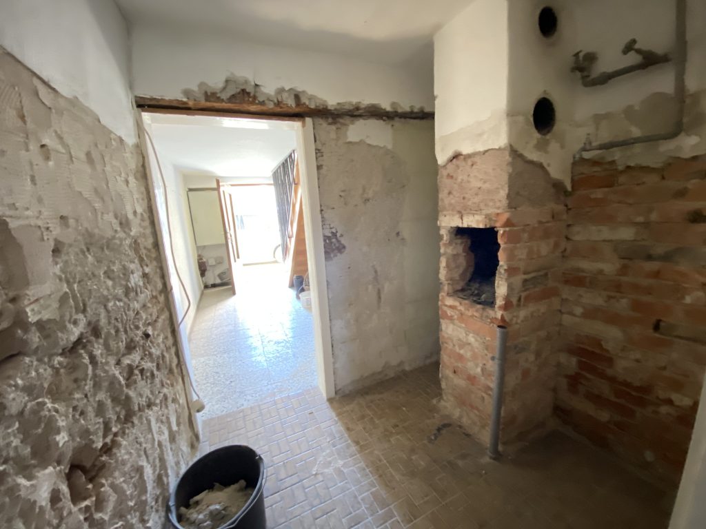 Hinter den Fliesen kommt der tolle Mauerstein zum Vorschein. Die Steine kann man hier überall in der Gegend finden. Unser Haus besteht im Erdgeschoß über 2m Höhe aus einer dicken Steinmauer. Wir werden diese nach der Renovierung soweit als möglich innen sichtbar lassen. Eine Herausforderung wird es noch werden, die Reste an Putz von den Steinen zu entfernen.