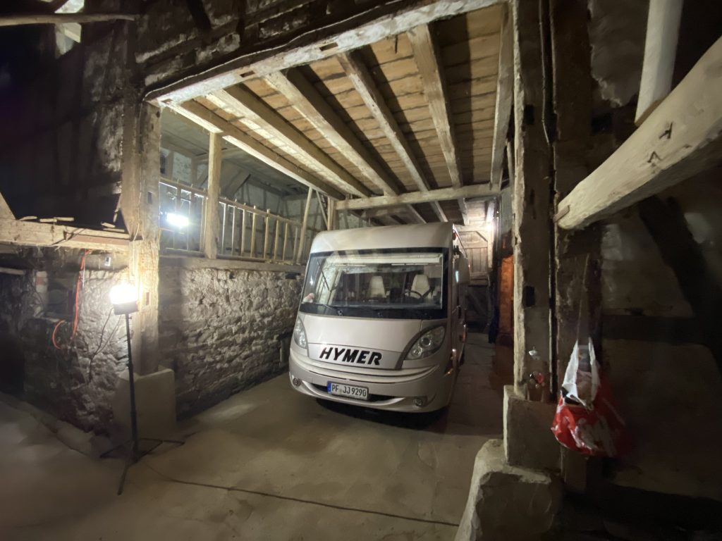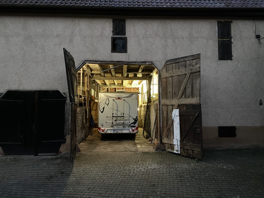 Da es in den letzten Tagen recht kalt war, habe ich unser Wohnmobil zum Laden der Batterien bewegt. Nette und ich hatten zu Beginn der Scheunenzeit die Idee verworfen, unser gutes Stück in der Scheune ab zu stellen. Soll halt unser Kitemobil bleiben und kein Baustellenfahrzeug werden… 😉
