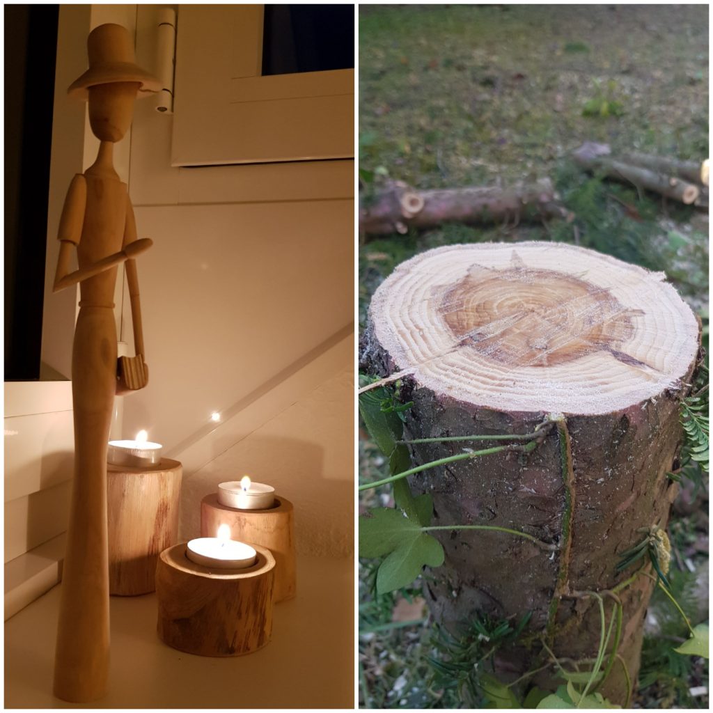 Bäume schneiden, gibt auch immer schönes Holz. Holz vom Apfelbaum, Holz vom Birnbaum… ganz wunderschön aber ist das Holz der Eibe, die Torsten mal eben so im Garten weggesemmelt hat. Ich hoffe ganz stark auf meinen Paps, der aus dem Eibenholz bestimmt eine schöne Variante seiner Drechselfiguren hinkriegt. Bin gespannt, wie die Dame dann heißen wird… Wenn aus einem Olivienholz Olivia entstanden ist, wer oder was entsteht dann aus Eibenholz? 🙂