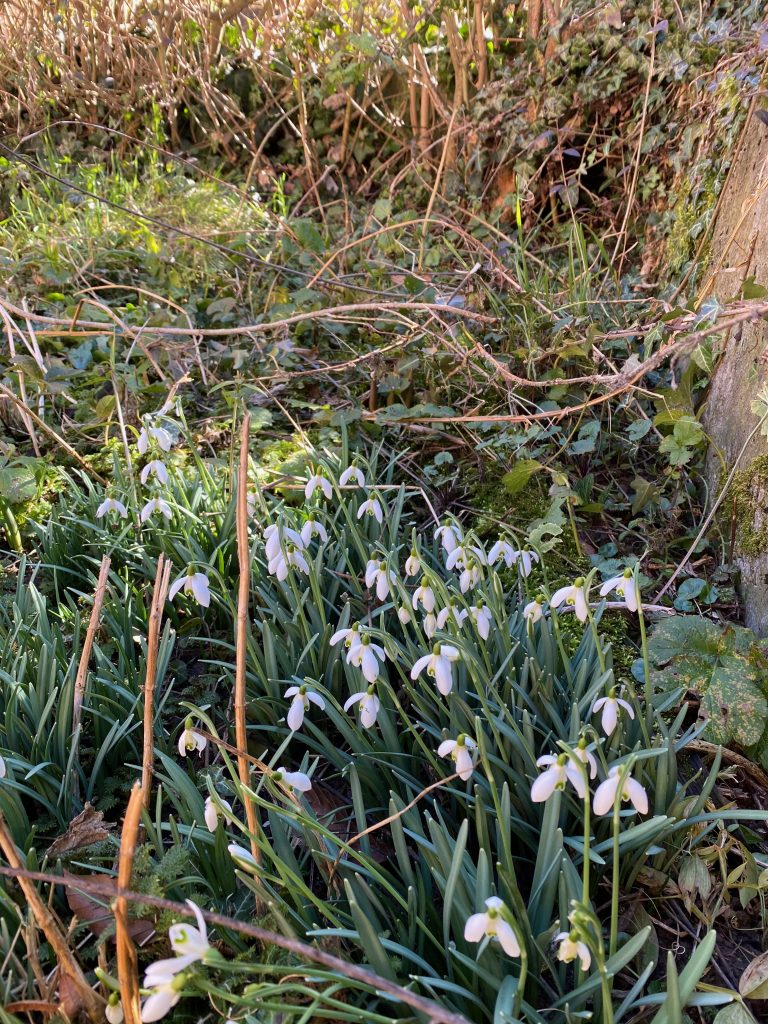 Wir wollten die Obstbäume beschneiden und die Haselnuss, Eibe und Quitte am Bach stutzen. Nette hat mir zu Weihnachten eine kleine Kettensäge geschenkt und darüber hinaus habe ich noch Baumscheren bestellt. Wir waren also gut ausgestattet. Zum Glück haben uns noch unsere Nachbarn, Moni und HP, geholfen. Sonst wäre das wohl nicht zu schaffen gewesen.