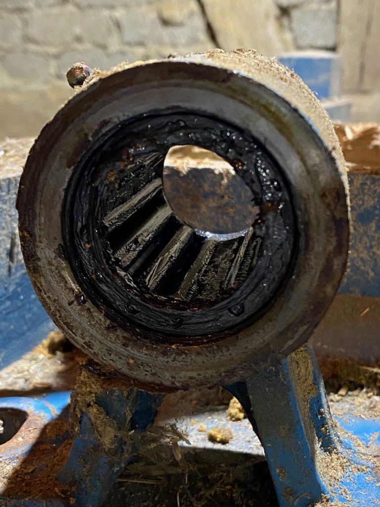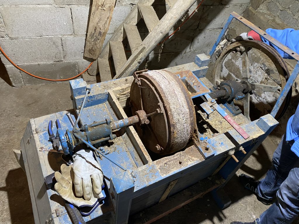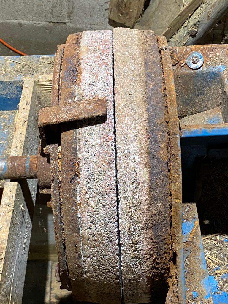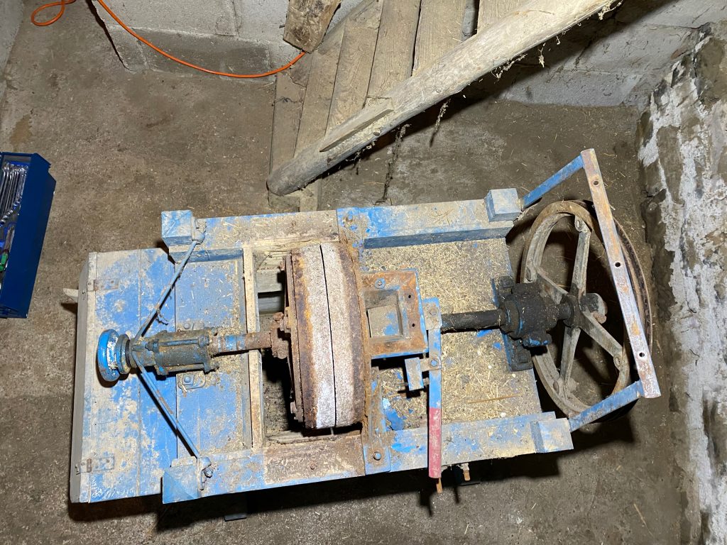 Eines der Fundstücke – ok suchen brauchte man nach dem Riesenteil nun wirklich nicht – ist eine alte Schrotmühle. Da wurde das Mehl mal geschwind selber gemahlen. Wir hatten noch geschaut, ob es dafür vielleicht Abnehmer gibt. Aber das Interesse geht gegen Null. Also stand die Demontage heute auf dem Plan. Es war unglaublich interessant, das Teil auseinander zu nehmen. Dass ein Motor so schwer sein kann, hätte ich nie gedacht. Alles ganz simpel aber solide gebaut. Ein tolles Geräusch, wenn die Mahlsteine aneinander reiben. Maschinenbau vom Feinsten 😉