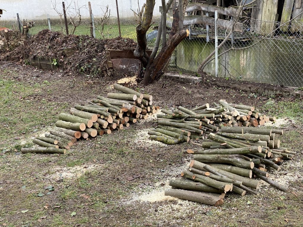 Nun haben wir einen kleinen Kahlschlag am Bach und die Obstbäume sehen richtig toll aus. Die uralte Birne wurde gekürzt die Apfelbäume perfekt beschnitten. Mit Videos aus dem Internet ist man da ja schnell Vollprofi.