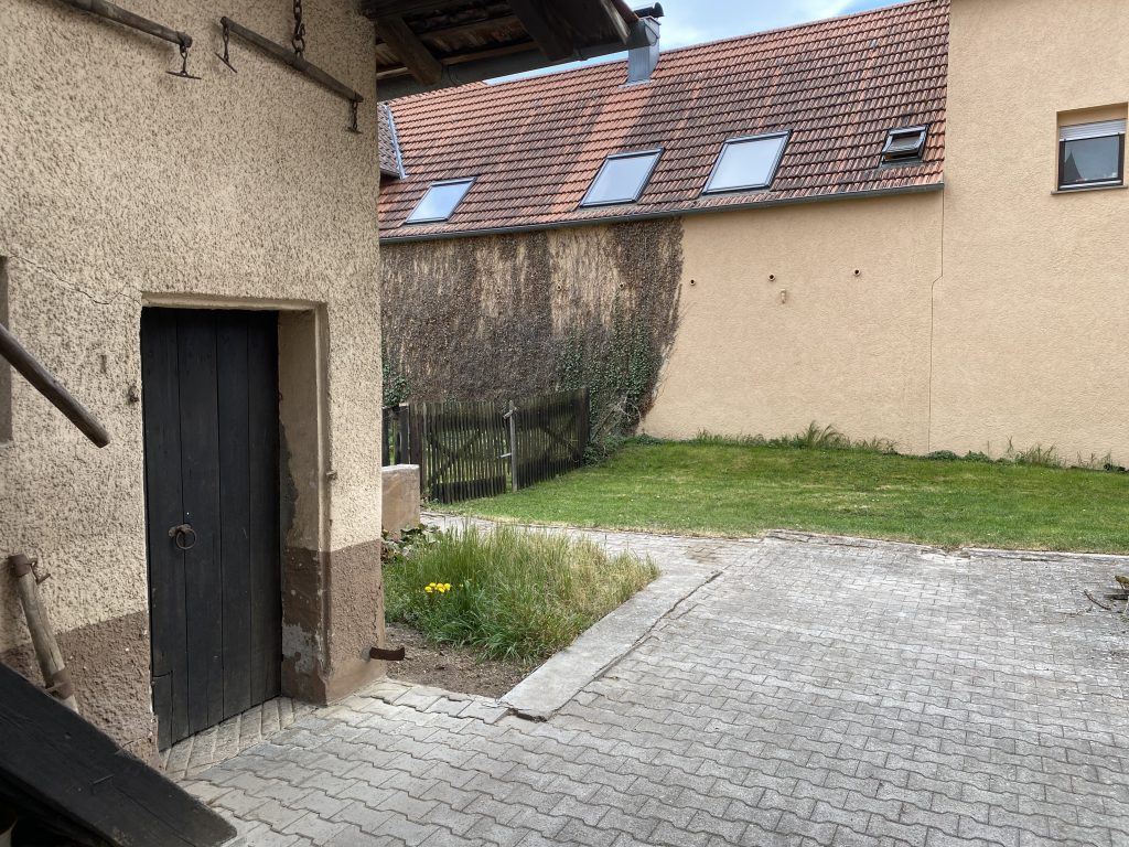 Seit Jahren hatten Moos und Gras im Hof und der Einfahrt ungehindert die Chance vor sich hin zu wuchern. Jetzt soll wieder Ordnung herrschen.