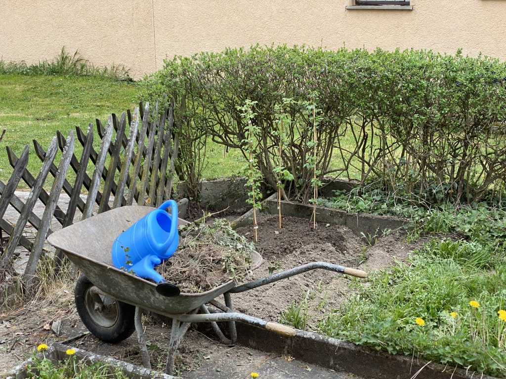 Der kleine Bauerngarten neben dem alten Häuschen hat es ganz schön in sich. Weil er jahrelang nicht bewirtschaftet wurde, ist die Erde in den Beeten bocklhart. inzwischen lassen sich kleine Erfolge erkennen… und die ersten Erdbeerpflänzchen sind gesetzt.