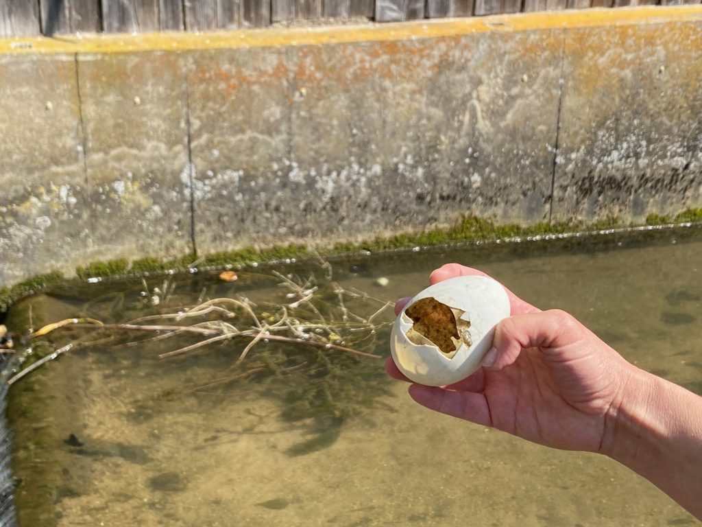 Dazu ringsherum das herrliche Frühlingserwachen samt rauschendem Bach. Einfach nur schön! … Im Bach haben wir übrigens Eier gefunden. Erst dachten wir, das seien Ostereier, die von einem Strauch gefallen sind. Denkste – typisches Zivilisationsdenken. Werden wohl geräuberte Enteneier sein…