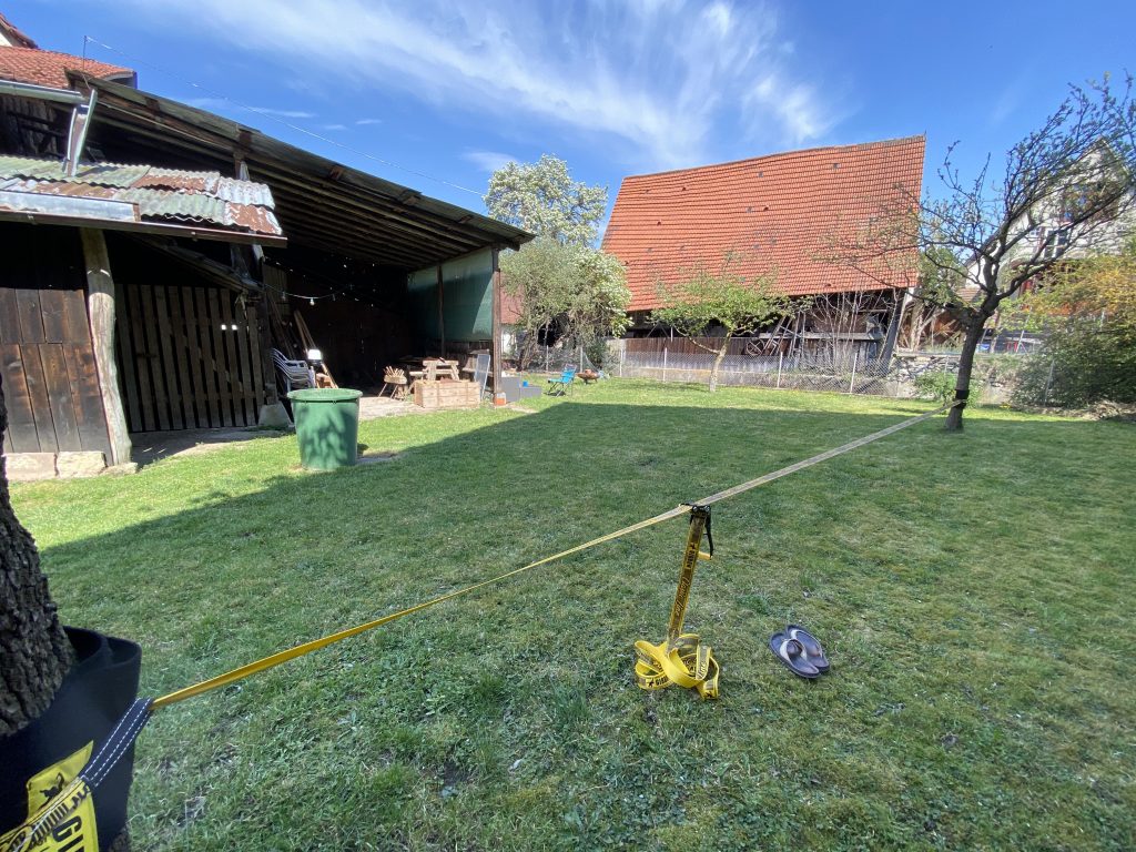 Und dazu gab es dann noch die Slackline. Wie geil ist das denn, wenn man einen Garten mit Bäumen hat, um diese bei sich auf spannen zu können 🙂 .