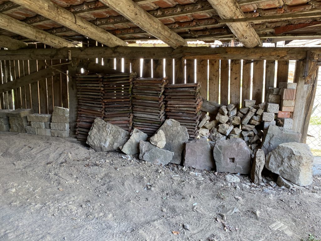 Bei all den Aufräumungen haben wir eine Vielzahl von Steinen gefunden. Die werden wir sicher noch mal bei der Erneuerung der Gefächer in der Scheune gebrauchen können.