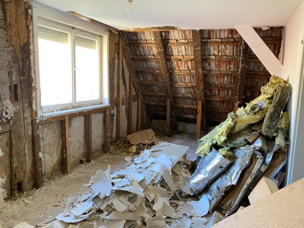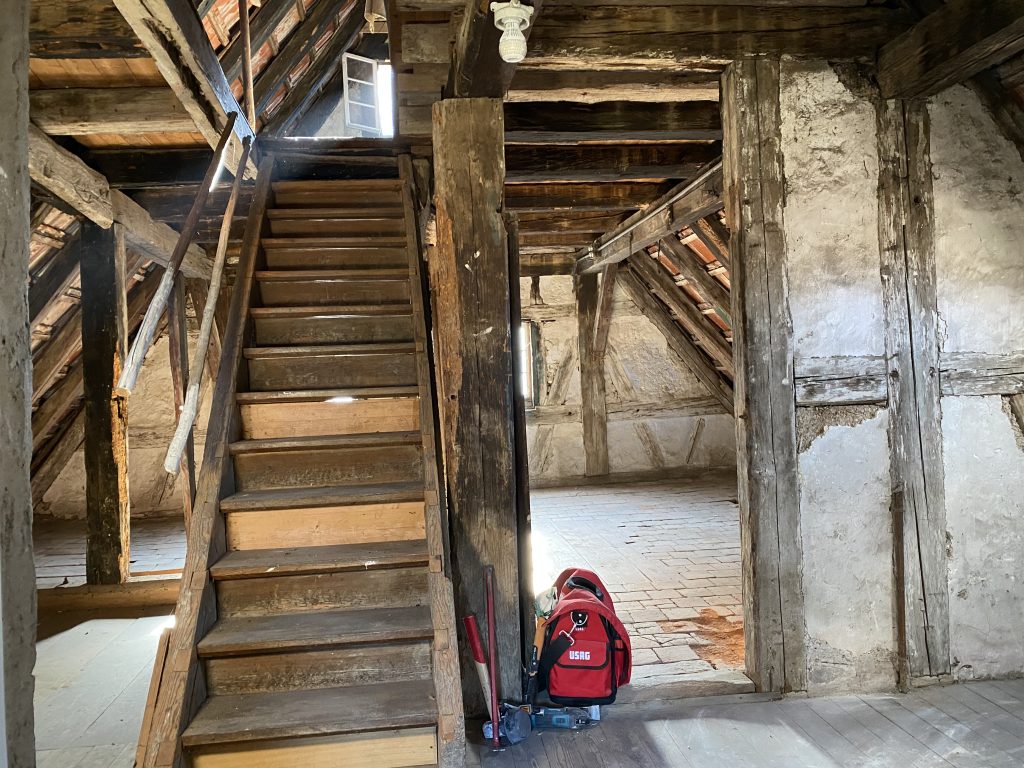 Heute haben wir den Feiertag genutzt, um wieder im Haus und Hof weiter zu kommen. Nette hat den Bauerngarten umgegraben und ich habe begonnen, die Einbauten und Trennwende im Dachgeschoss raus zu reissen. Hier war ein Zimmer eingebaut und der Aufgang durch eine isolierten Wand vom Dachboden getrennt. Das Ganze werden wir so weit als möglich offen legen. Hier entsteht dann mal das Schlafzimmer und unser Wohnzimmer mit Galerie im voll ausgebauten Dachgeschoß.
