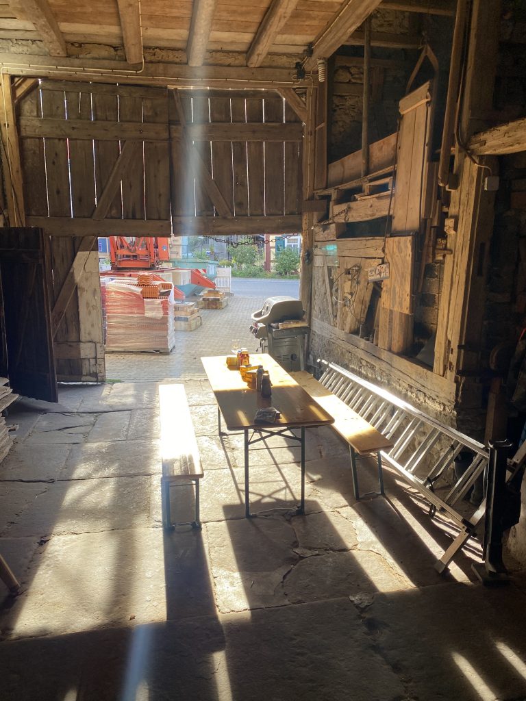 Dann wurde es richtig zünftig. Mit Richtspruch, Birke, an der Scheunenwand, zerschmetterten Weinglas und im Anschluß hatten wir eine schöne Feier in der Scheune. Mit ganz vielen alten und neuen Nachbarn hat das richtig Spaß gemacht. Das kann nur gut werden in unserem Hof … 🙂
