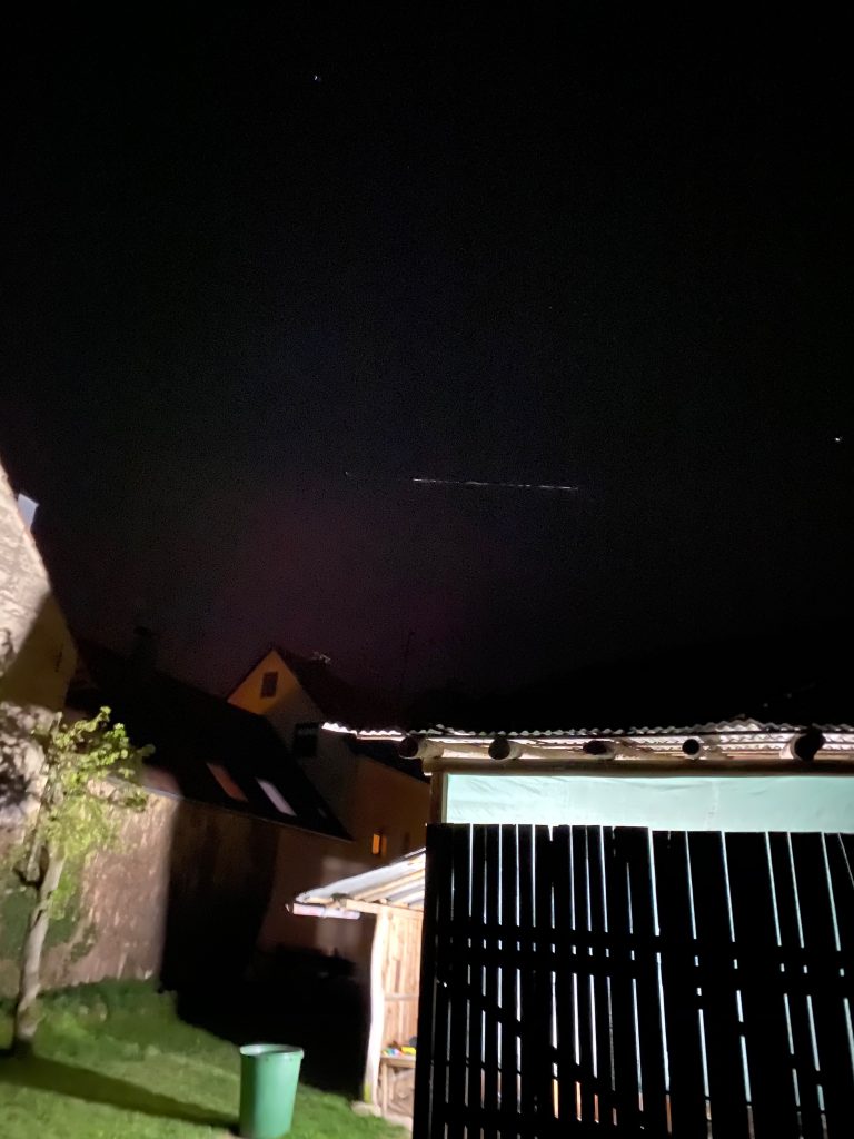 Gestern hatte ich zwei liebe Kollegen zum Grillen ein geladen. Eigentlich war ein Gaststättenbesuch geplant, doch der fällt derzeitig ja flach. Kein Problem, denn bei uns im Garten ist Sicherheitsabstand ohne Ende möglich ;-). Im Laufe des Abends sahen wir plötzlich eine Lichterkette am Himmel. Von Laserpointer über Lichtreklame bis hin zum Ufo war alles möglich. Schnell haben wir im Internet raus gefunden, dass es die ca. 60 Satelliten der spaceX Internet Anbindung waren, welche vor 2 Tagen gestartet wurden.