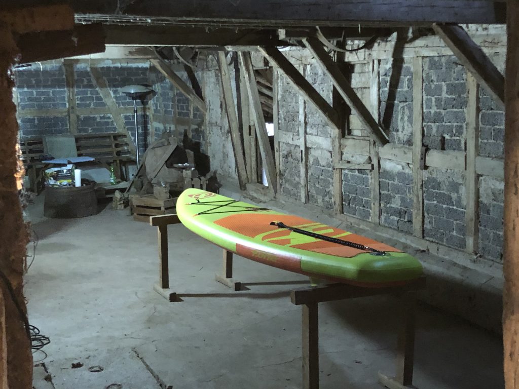 Die Architektin hat uns empfohlen, doch mal darüber nach zu denken, wo wir den großen Esstisch in der Scheune positionieren wollen. Der Rest baut sich dann darum… Besonders zur Weihnachtszeit ist klar, dass ein ganz großer Tisch irgendwo seinen Platz finden soll. Feste müssen gefeiert werden… 🙂 Erst haben wir es probiert, den Tisch in die Tenne zu stellen. Das war uns aber zu sehr am Eingang. Als Favorit stellt sich eine Position hinten im Scheunenanbau quer heraus. Da sind für 3,5 m Tisch genug Platz. Ursprünglicher Plan war es, für das Küchenmöbel dort einen Raum zu finden. So mit Tisch gefällt es uns aber besser. Die Wand zum Garten soll Glas werden und auf der anderen Seite sieht mann dann die tolle alte Scheune. Gegenüber ist dann noch Platz für Küchenmöbel und einen gemütlichen Sitzplatz für Zwei. In die Tenne kommt dann der Küchenblock. Na, mal schauen ob es bei der Idee bleibt.
